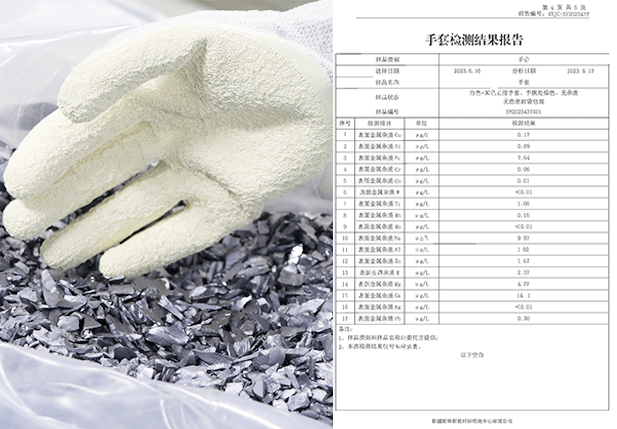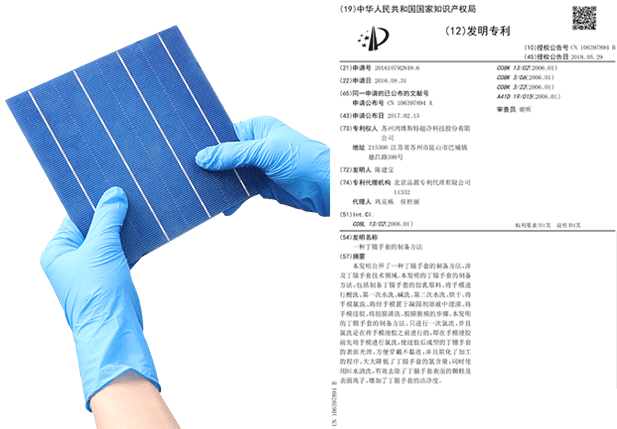 手套經(jīng)過特殊工藝處理,通過驗證將手套放置氮?dú)夤癞?dāng)中80H,手套接觸產(chǎn)品無任何氧化情況,經(jīng)權(quán)威機(jī)構(gòu)檢測氯元素及硫元素完全符合接觸電池片標(biāo)準(zhǔn),且不會在電池片上面留下任何指印。